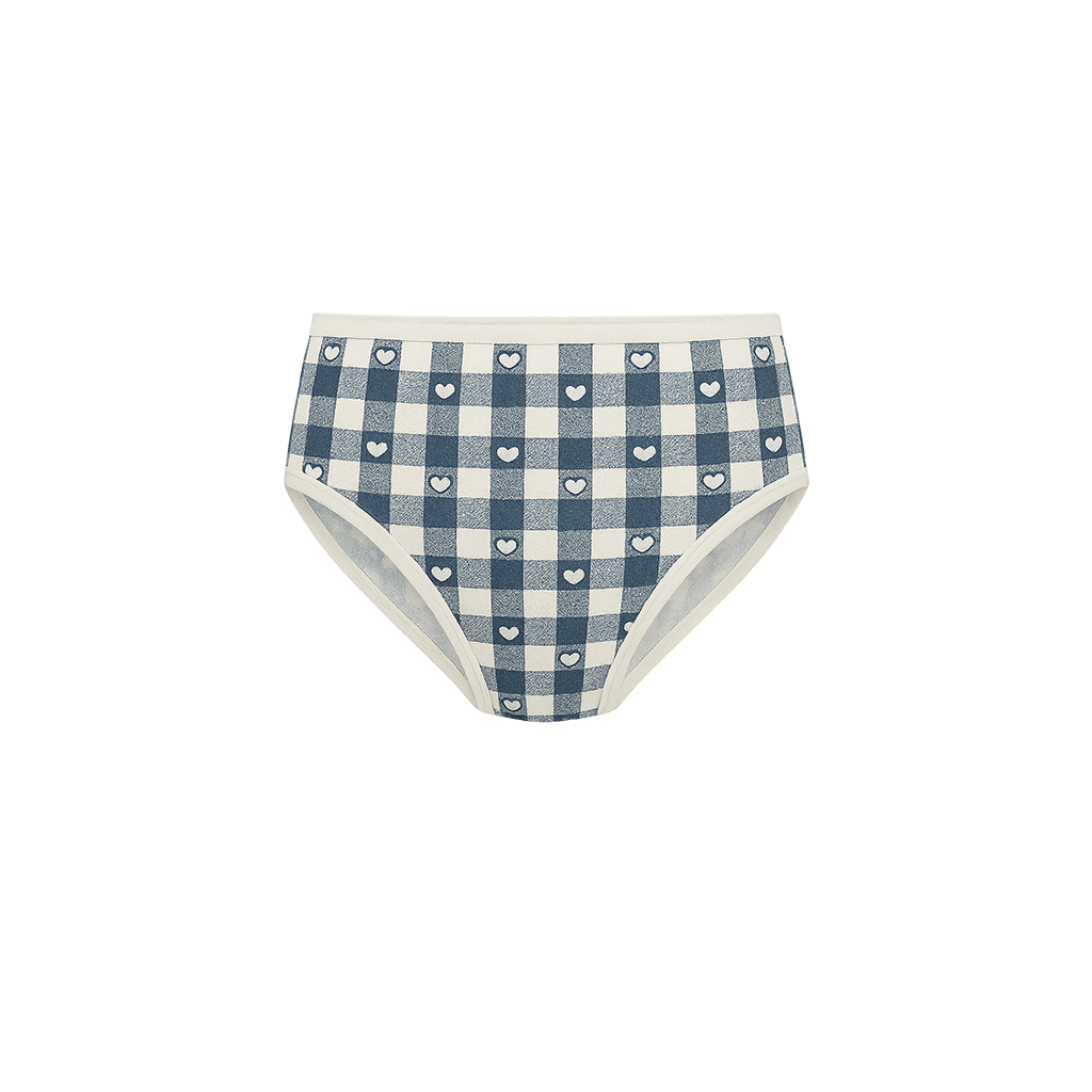 شورت زنانه نخپنبه دلداده چاپی – سایز: مدیوم (M), طرح و رنگ: شطرنجی قلبی شیری سورمه ای